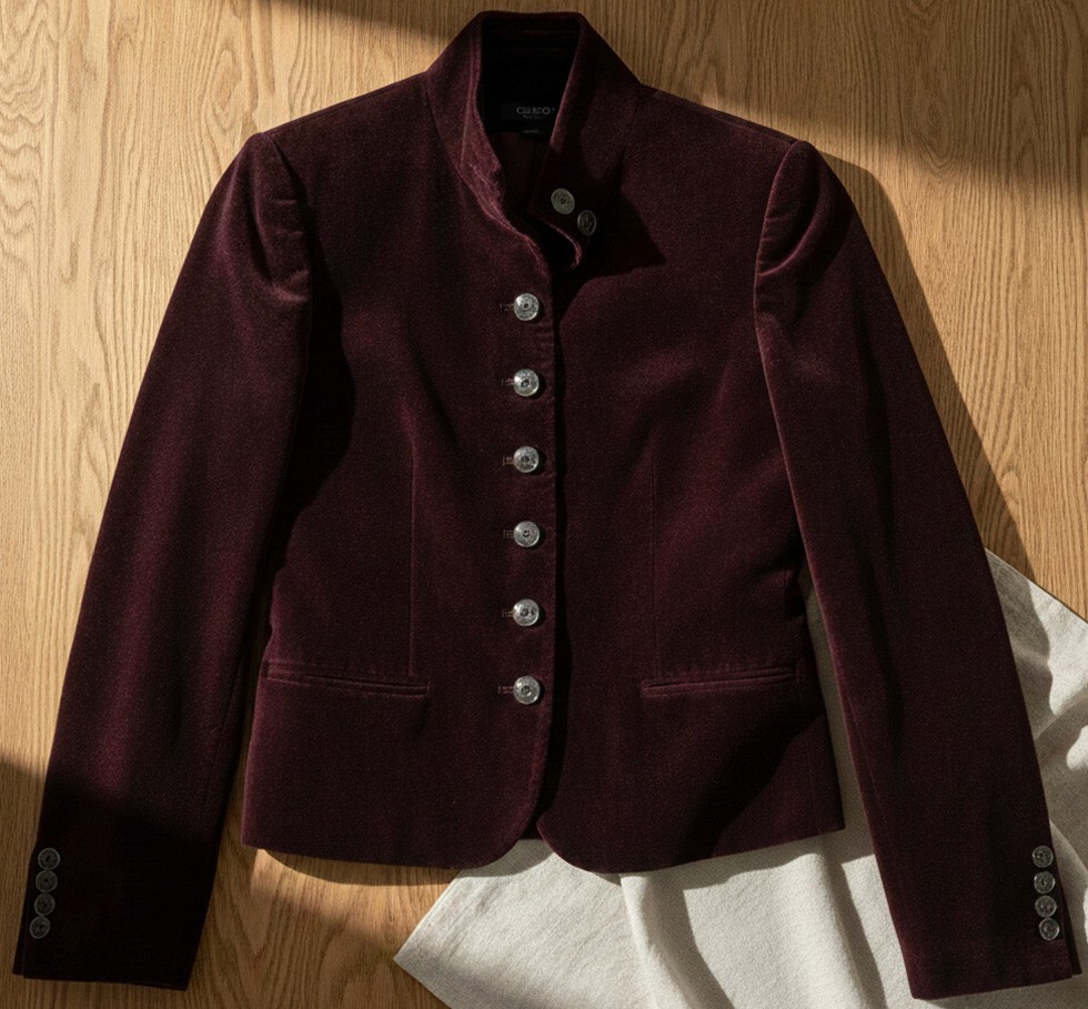 Founders Note: I love a new purchase, but I love "shopping my own closet" even more. I pulled this stunning circa-2010 deep plum velvet blazer with a stand-up collar and detailed buttons out of my closet storage (aka one of the boxes on my top shelf), and it is the perfect example of the current "Lady Jacket" trend. This is why I hold onto classic pieces even when they aren't in daily rotation.