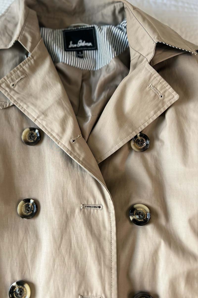 I own a classic double-breasted trench in camel (Sam Edelman) with a navy and white striped lining. It's the coat I reach for when I want to look polished but approachable. I also own a shorter version (Pendleton) in tan with a blue patterned interior. The shorter length works better with boots and feels less formal for weekend errands.