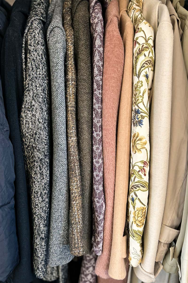 And then there are the true vintage treasures: a maroon patterned wool coat, a brown tweed coat with bracelet-length sleeves (Mondi), and a cream floral embroidered coat (Sara Berman) that lived entire lives before finding permanent homes in my collection.