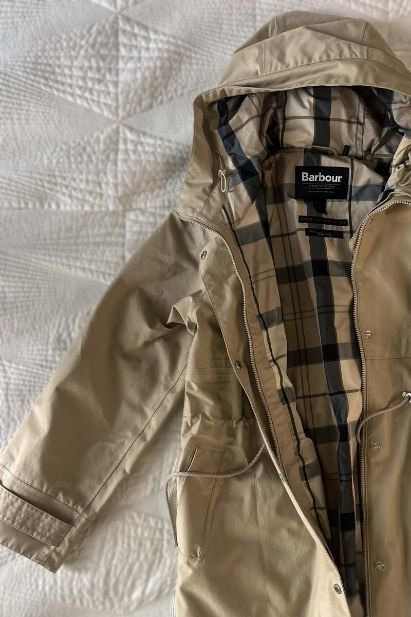 I also own a beige hooded parka (Barbour) for practical outdoor activities. Rain, errands, walking the dog. This is a coat that respects the reality of life in a northern climate.